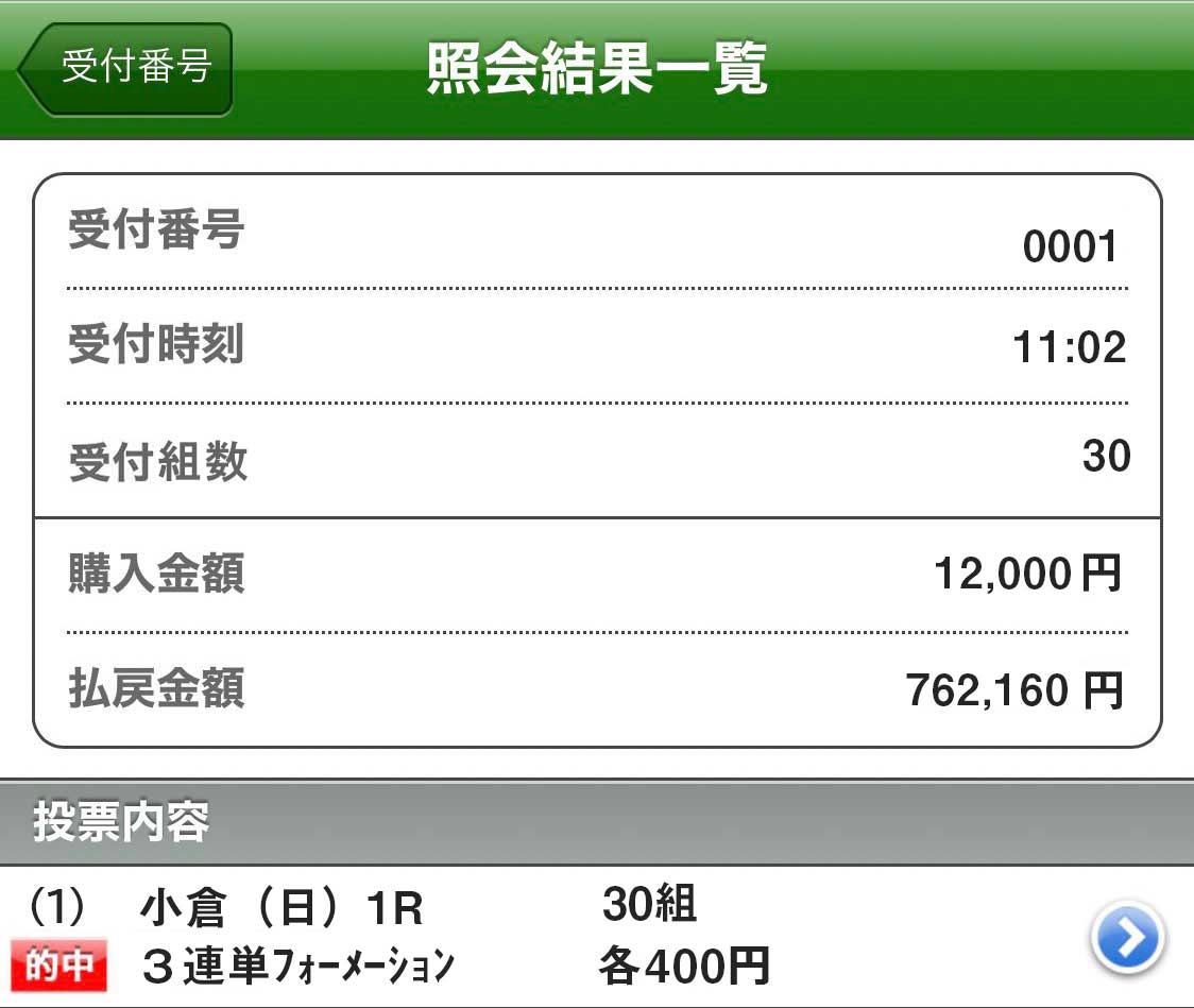 怪物級の的中手に入れました!