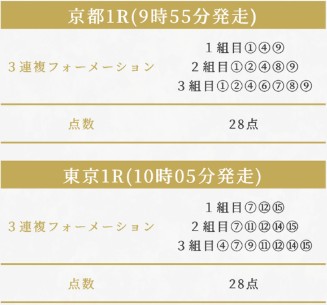 2月1日(日)に提供されたこのプランの買い目