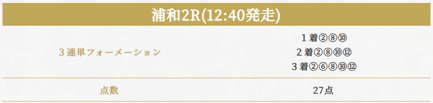 浦和2R/三連単/買い目点数27点