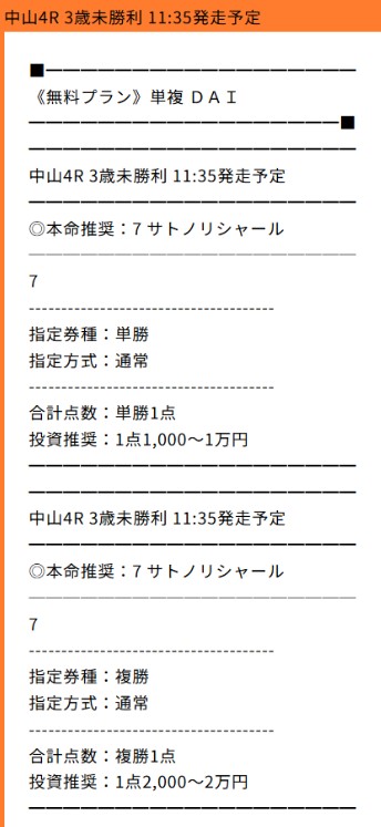 買い目点数1点のまさにトレンドど真ん中の無料予想を発見