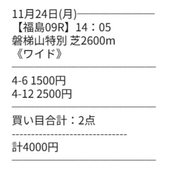 ちなみに1日2鞍的中で無料予想配当総額2万5060円