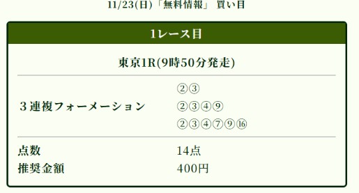 高額な払戻しではないですが有料情報最初の参加にはちょうどいいかもですね!