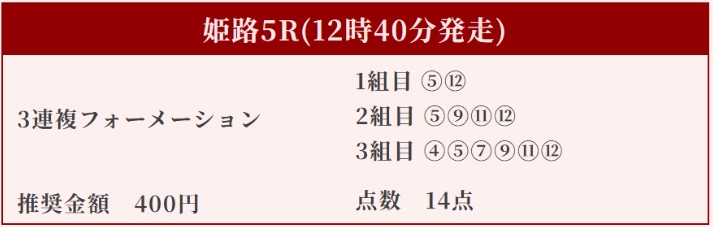 2月4日(水)無料予想で姫路5Rの三連複的中