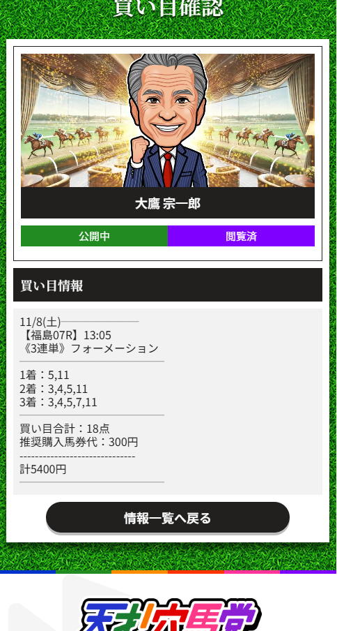 年末の有馬記念までガンガン無料予想的中を届けて下さい!期待しています!