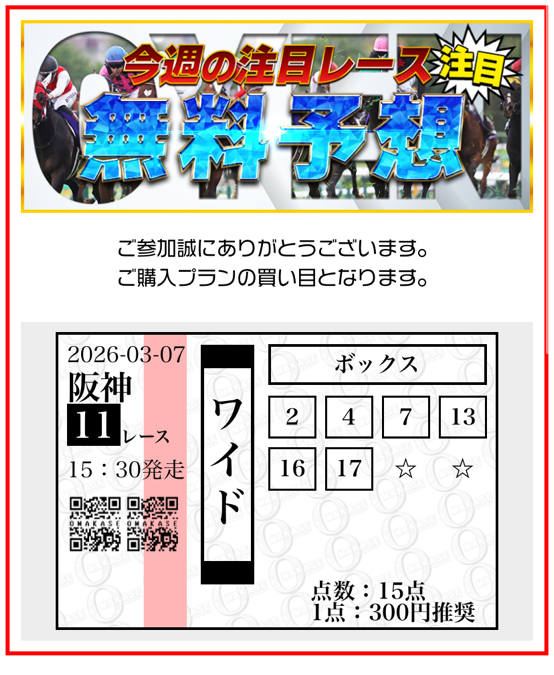 早速新規登録を済ませて13日(土)の無料予想に参加をしてみたら