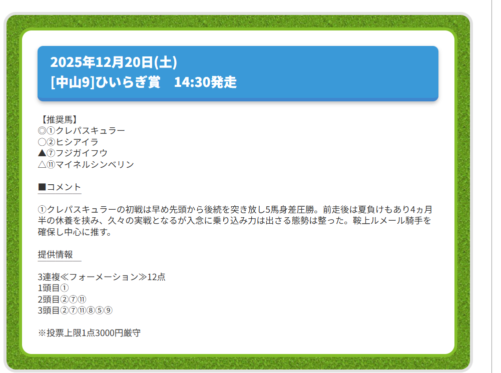 無料予想をコンスタントに的中してくれる